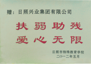 ·2012年5月,興業(yè)集團(tuán)榮獲“扶弱助殘,愛心無限”獎(jiǎng)狀