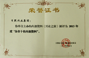 ·2014年5月,《興業(yè)之窗》獲2013度“全市十佳內(nèi)部資料”稱號