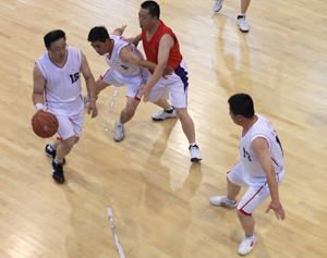 在比賽過程中各支代表隊都發(fā)揮出了極高的水平,為觀眾奉獻(xiàn)了一場場精彩的比賽。尤其在9月20日上午的交叉賽中,興業(yè)汽配代表隊與天泰鋼結(jié)構(gòu)代表隊勢均力敵,比賽中雙方比分交替上升,離結(jié)束還有不到20秒時,汽配代表隊61:58領(lǐng)先3分并持有球權(quán),此時汽配隊員的心理感覺穩(wěn)操勝券,一個不經(jīng)意的走步把球權(quán)送給對手,離結(jié)束不到2秒,鋼構(gòu)中鋒馬沖順勢強(qiáng)攻,一記精準(zhǔn)的3分遠(yuǎn)投, 將比分追成61平,使比賽拖進(jìn)加時。在加時賽中,汽配中鋒崔冰連續(xù)中投得手,興業(yè)汽配代表隊最終以73:65的比分完勝鋼構(gòu),躋身本屆籃球比賽的冠、亞軍決賽。因為天氣原因,9月20日下午的半決賽、決賽和驥翼組籃球表演賽改在日照一中室內(nèi)籃球場舉行。半決賽、決賽異常激烈,特別是在興發(fā)和汽配之間進(jìn)行的決賽,展示了興業(yè)集團(tuán)籃球的實力和水平,興發(fā)隊員們一次次嫻熟的配合,一個個精彩的扣籃,不時獲得現(xiàn)場觀眾的陣陣喝彩和掌聲。集團(tuán)驥翼隊與興發(fā)驥翼隊的籃球表演賽同樣上演了群雄大戰(zhàn),集團(tuán)驥翼隊在王建國總經(jīng)理帶領(lǐng)下,抗拒了體力不足,堅持打滿全場,最終以44:44的比分和興發(fā)驥翼隊握手言和(因?qū)俦硌葙惒辉偌訒r),也宣告興業(yè)集團(tuán)第五屆職工運動會籃球比賽鳴金收兵。